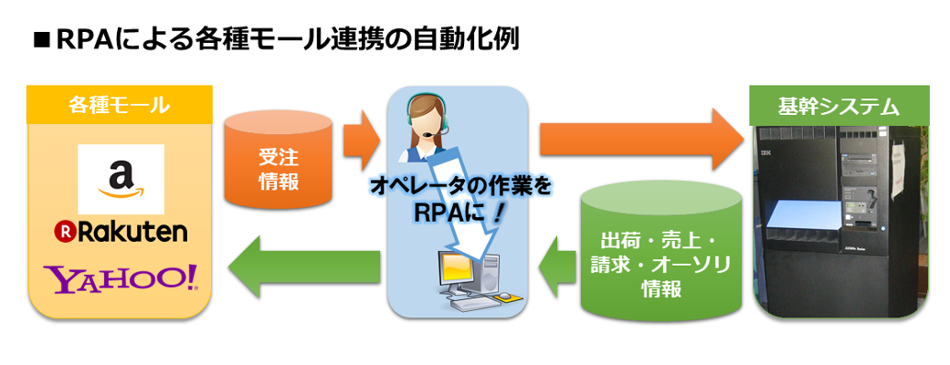 RPA化前:各種モールと基幹システムのデータのやり取りをオペレータが手動で実施
